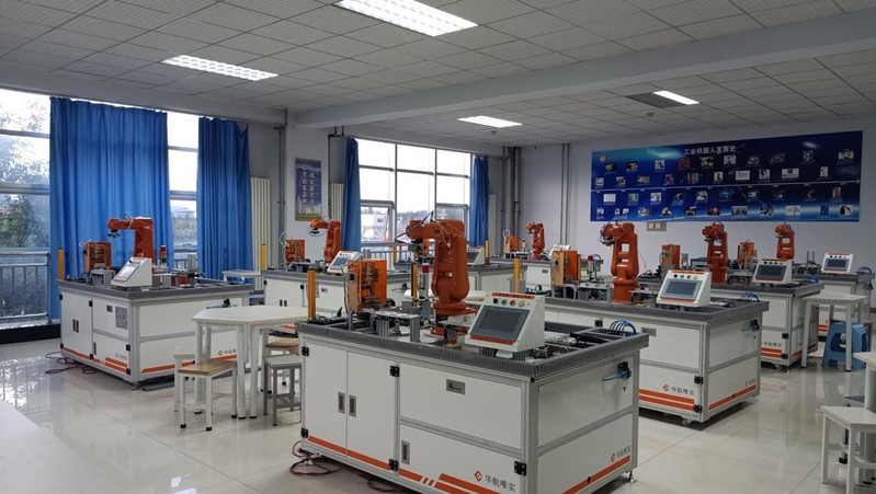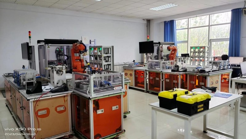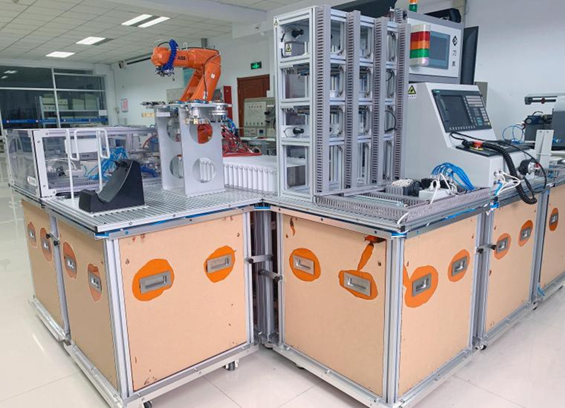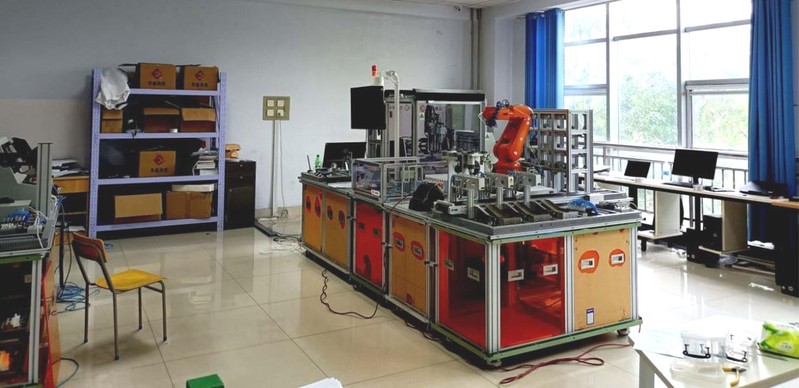 (2)机器人系统集成实训室由智能制造单元系统集成应用平台组成。主要完成智能制造核心技术的理论知识和基础技能训练,离散控制、伺服运动、工业网络、数据采集与处理、工业机器人示教编程、典型系统集成与联调等方面训练。